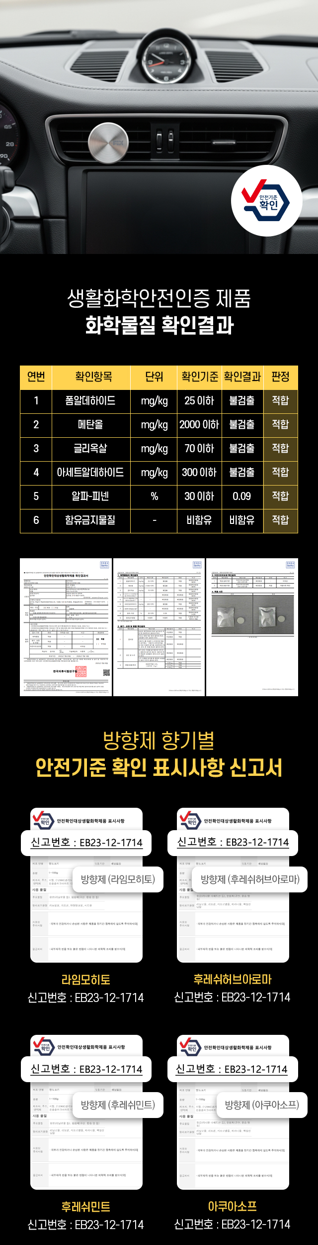 ¿Â °¡Á·ÀÌ ÇÔ²² Ÿ´Â Â÷, Çâ±â¸¸Å ¾ÈÀüÀÌ Áß¿äÇÕ´Ï´Ù. ¾ÈÀü È®ÀÎ ´ë»ó »ýȰÈÇÐÁ¦Ç° ±âÁØÀ» Åë°úÇßÀ¸¸ç, À¯ÇØ ¼ººÐ ¹× ¾Ë·¹¸£±â À¯¹ß ¹°ÁúÀÌ ¾ø¾î ¾È½ÉÇÏ°í »ç¿ëÇϼŵµ ÁÁ½À´Ï´Ù.