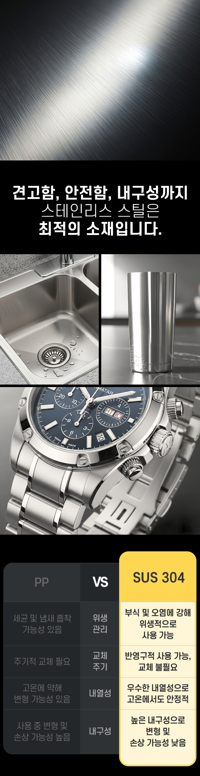 ³»±¸¼º°ú ºÎ½Ä ÀúÇ×·ÂÀÌ ¶Ù¾î³ª°í À§»ýÀûÀ̸ç, ÀÇ·á±â±â °í±Þ À§»ý ¼³ºñ µî ´Ù¾çÇÑ ºÐ¾ß¿¡ ³Î¸® »ç¿ëÇÏ´Â ¾ÈÀüÇÑ ½ºÅ×Àθ®½º ÀçÁúÀº ³»¿¼ºÀÌ ¿ì¼öÇØ °í¿Â ȯ°æ¿¡¼µµ ¾ÈÁ¤ÀûÀÎ ¼º´ÉÀ» ¹ßÈÖÇÕ´Ï´Ù.