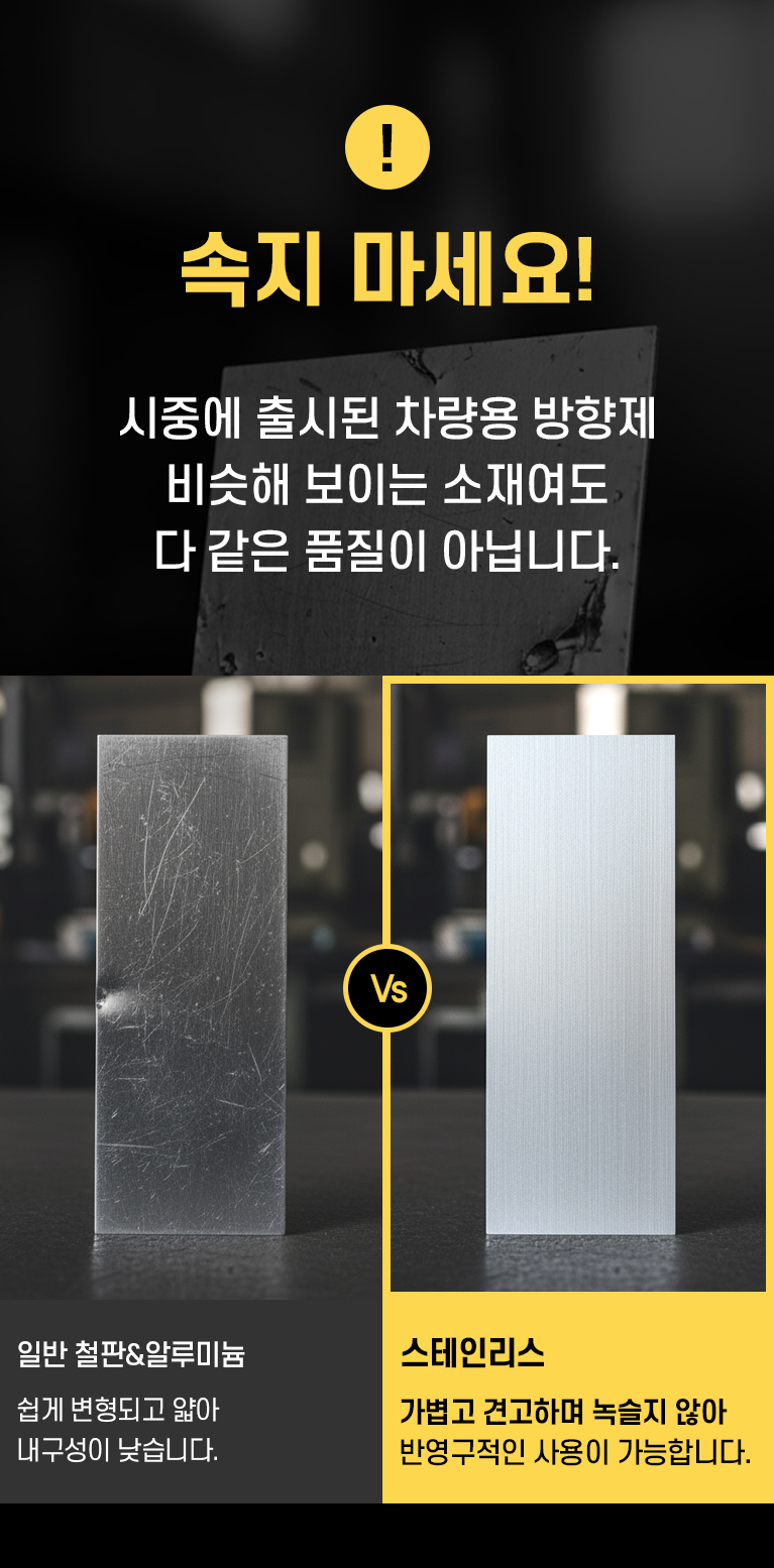 °¡°øÀÌ ¾î·Á¿î °í±Þ ½ºÅ×Àθ®½º ½ºÆ¿À» »ç¿ëÇÏ¿´½À´Ï´Ù. Á¤±³ÇÏ°Ô ¸¶°¨µÈ ¼ÒÀç¿Í °¡°øÀ¸·Î ½Ã°£ÀÌ Áö³ªµµ º¯Ä¡ ¾Ê´Â °ß°íÇÑ Ç°Áú·Î Â÷·®ÀÇ °í±Þ½º·¯¿òÀ» À¯ÁöÇÕ´Ï´Ù.
