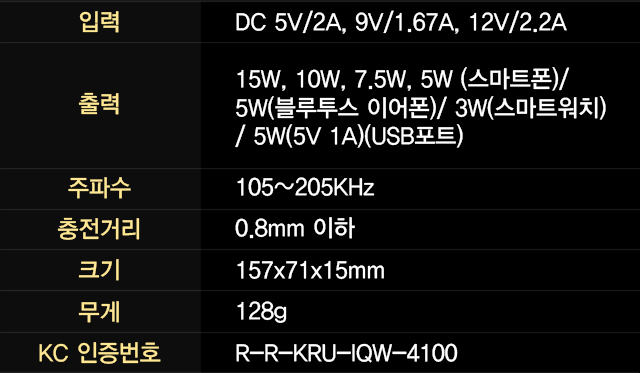 * ºí·çÅõ½º À̾îÆù ÃÖ´ë 5W, ½º¸¶Æ® ¿öÄ¡ ÃÖ´ë 3WÀÇ ¹«¼± ÃæÀüÀ» Áö¿øÇÕ´Ï´Ù.