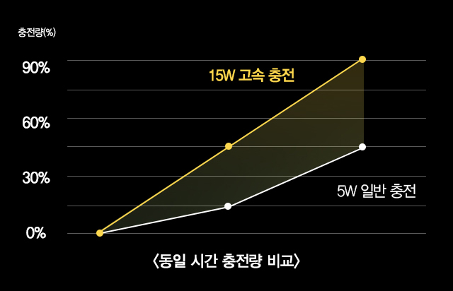 º°µµÀÇ ¼± ¿¬°á ¾øÀÌ ÃæÀü±â¿¡ ¿Ã·Á³õ´Â ¼ø°£ ¹«¼± ÃæÀüÀÌ ½ÃÀ۵Ǹç,½º¸¶Æ®Æù ±âÁØ ±â±â¿¡ µû¶ó 5W(ÀϹÝÃæÀü) / 7.5W(°í¼ÓÃæÀü) / 10W(°í¼ÓÃæÀü) Ãâ·ÂÀ» Áö¿øÇϸç, ÃÖ´ë ÀÏ¹Ý ÃæÀüº¸´Ù 3¹è ºü¸¥ 15WÀÇ °í¼Ó ÃæÀüÀ» Áö¿øÇÕ´Ï´Ù.