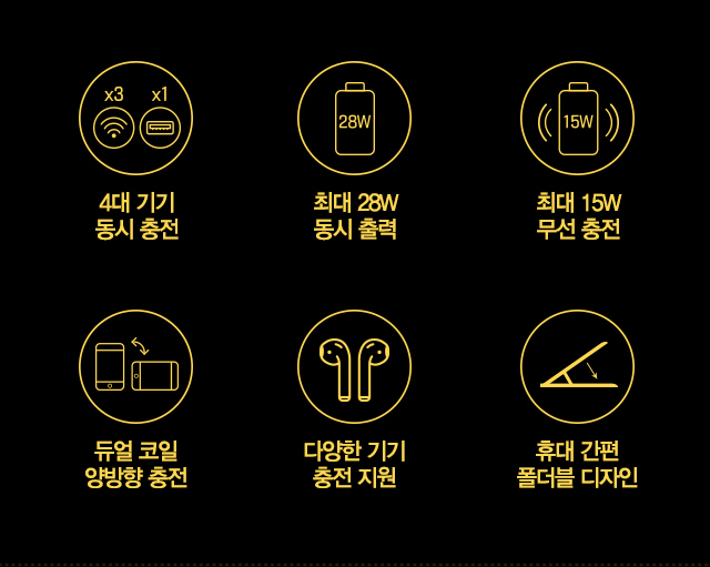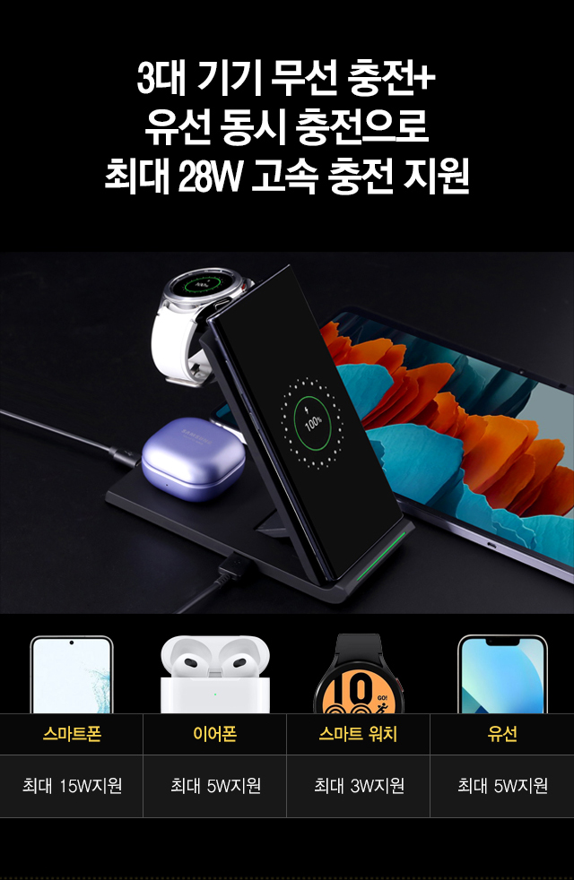 ½º¸¶Æ®Æù + ºí·çÅõ½º À̾îÆù + ½º¸¶Æ® ¿öÄ¡ 3´ëÀÇ ±â±â µ¿½Ã ¹«¼± ÃæÀü °¡´ÉÇϸç, ¹«¼± ÃæÀü Áö¿øµÇÁö ¾Ê´Â ±â±â´Â USB ¿¬°á ½Ã ÃæÀü °¡´ÉÇÏ¿© ÃÑ 4´ëÀÇ ±â±â µ¿½Ã ÃæÀüÀ¸·Î ±ò²ûÇÑ ÃæÀü °ø°£À» ¸¸µé ¼ö ÀÖ½À´Ï´Ù.